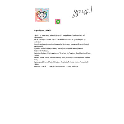 Flot sæt med 12 farvestrålende neglelakker til børn i alle regnbuens farver. Neglelakkerne er vandbaserede og specielt fremstillet til børn. Med disse neglelakker kan man nemt skifte farve, alt efter tøj eller humør. Med i sættet følger der et ark med de fineste små negleklistermærker, som kan give neglene et helt særligt udtryk. Fjernes nemt med lunkent vand og sæbe. Neglelakkerne er fremstillet af veganske ingredienser og er ikke testet på dyr.