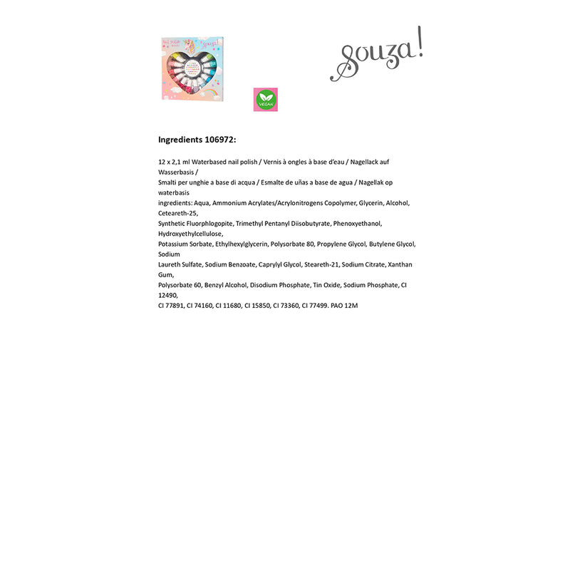 Souza neglelak sæt til børn, 12 neglelakker + negleklistermærker