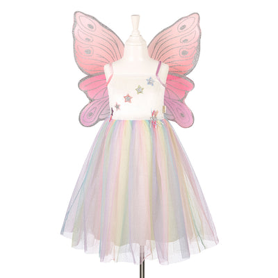 Yndig sommerfuglekjole til leg og udklædning fra Souza. Kjolen har skørt med flere lag af tyl og en flot overdel med glimmerstjerner i flere farver og sølvfarvet detaljer. Som tilbehør er der smukke rosa- og sølvfarvet sommerfuglevinger, som fuldender det smukke sommerfuglekostume. Findes i str. 3-4 år og 5-7 år.