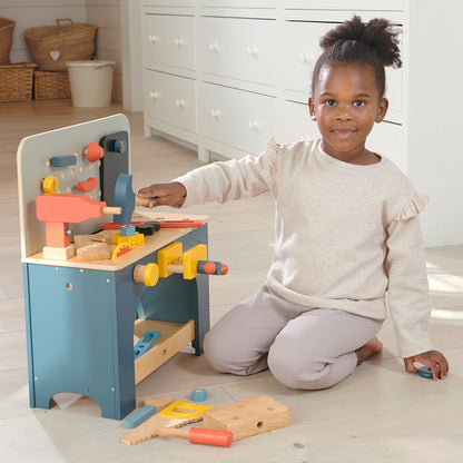 Værktøjsbænk med mulighed for kreativ leg med masser af huller til enten at placere værktøjet eller bygge et ansigt eller endda en robot ved hjælp af de medfølgende dele!