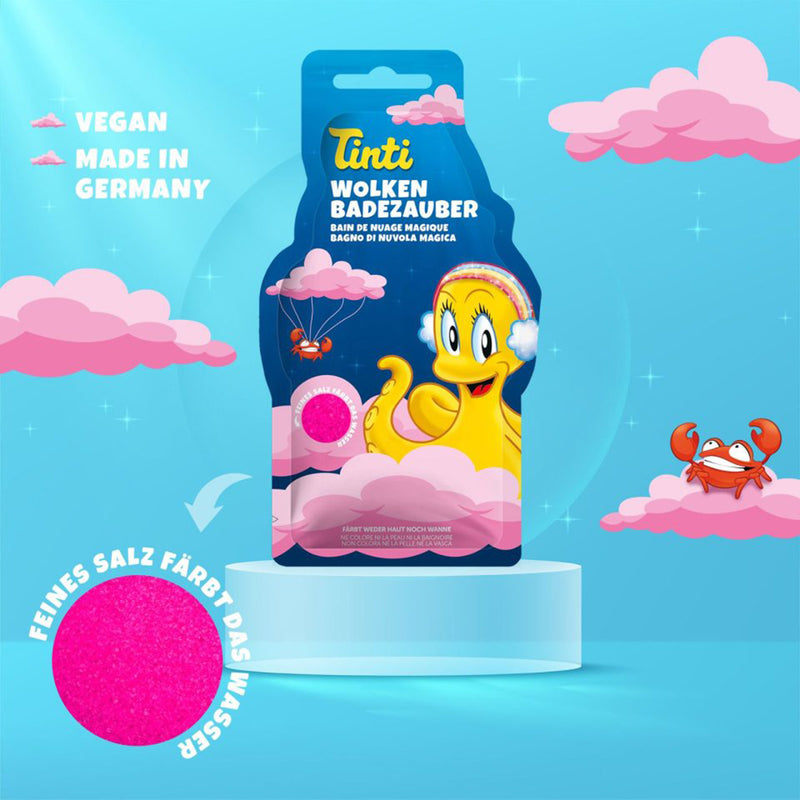 Var det noget med lyserøde, bløde skumskyer i vandoverfladen og et badevand, der dufter af søde bær? Så har du fundet det helt rigtige produkt. Spred de lyserøde saltkrystaller i vandet og se hvordan der bliver fremtryllet et fint badeskum i vandoverfladen, mens vandet samtidig bliver farvet lyserødt og dufter frisk. Posen har et fint vindue, så barnet kan se saltkrystallerne før de kommer i brug. Dermatologisk testet, anbefales fra 3 år.