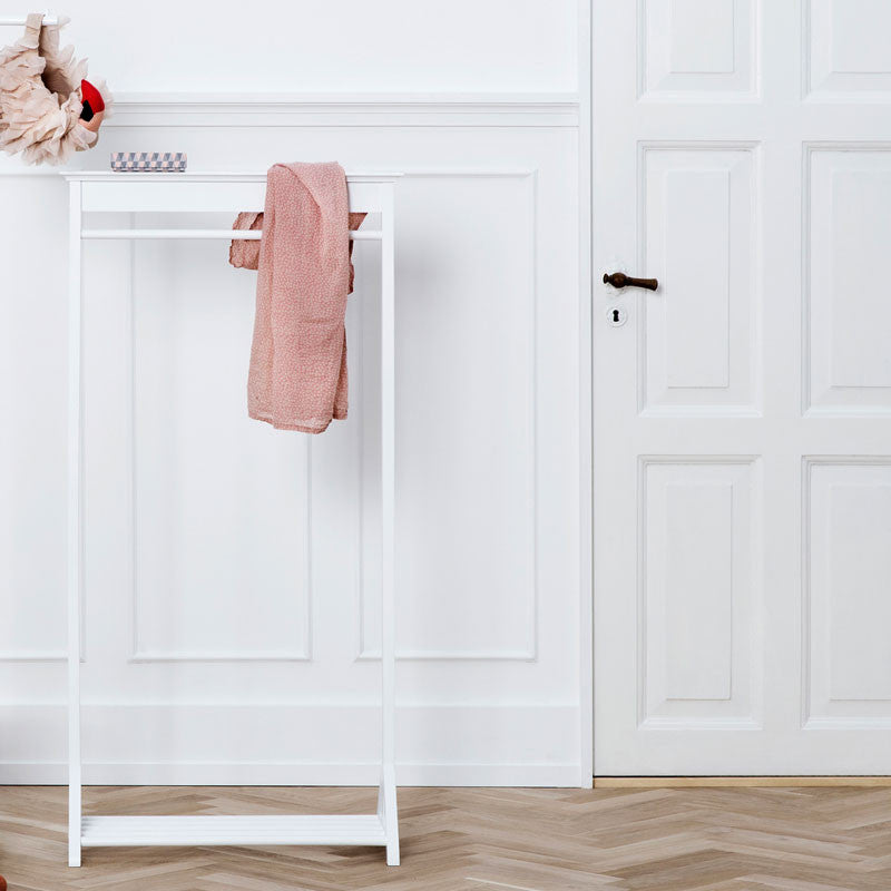 Super fint tøjstativ i træ i hvid fra det fra den skønne kollektion af børnemøbler fra det danske firma Oliver Furniture. Tøjstativet er virkelig fint at have stående på børneværelset til udklædningstøjet, til de fine kjoler eller pæne skjorter. Eller tøjstativet kan bruges i entreen til at have børnenes overtøj hængende på.