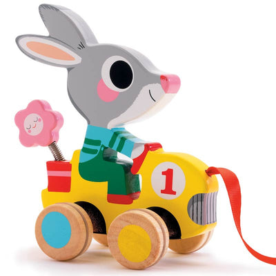 Sød kanin i træ til at trække i snor fra Djeco.