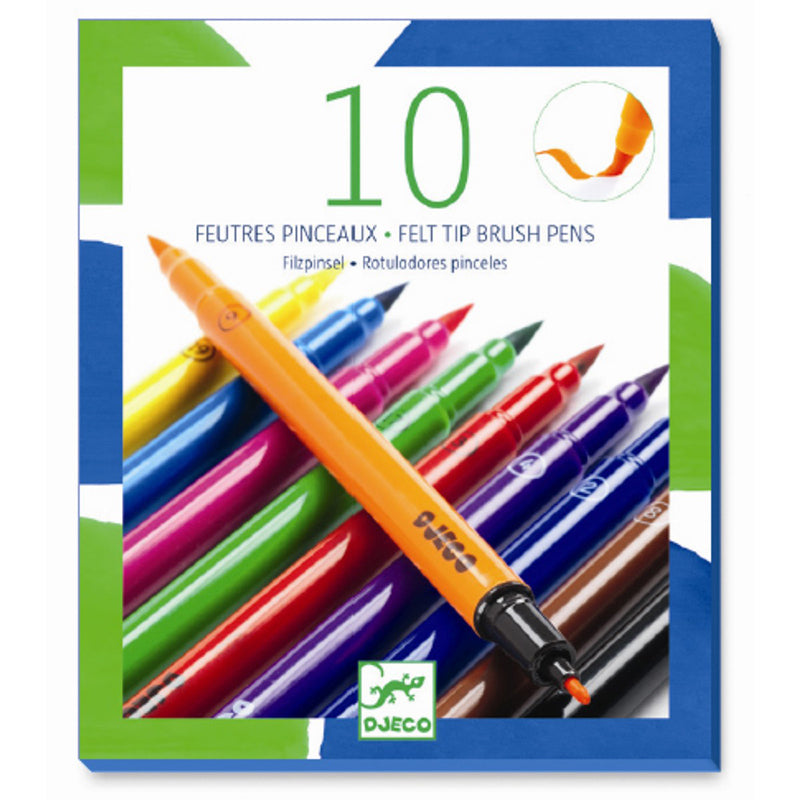 10 lækre 2-i-1 tusser fra Djeco med en blød pensel ligenden ende og fin, tynd ende. Rigtig gode tusser!