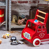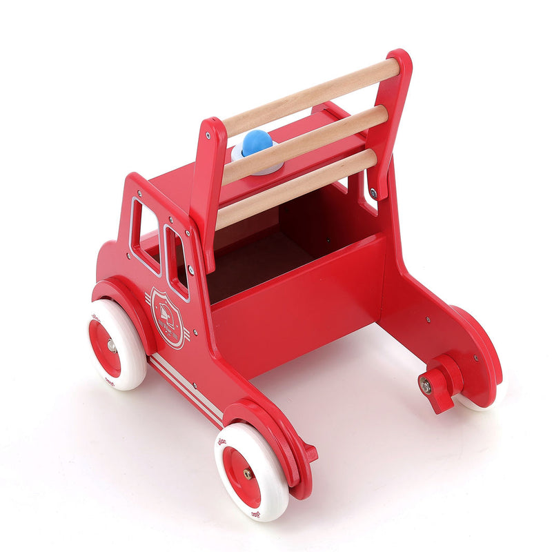 Med sit vintage brandbil-look er denne gåvogn i træ ideel til de barnets første ture.