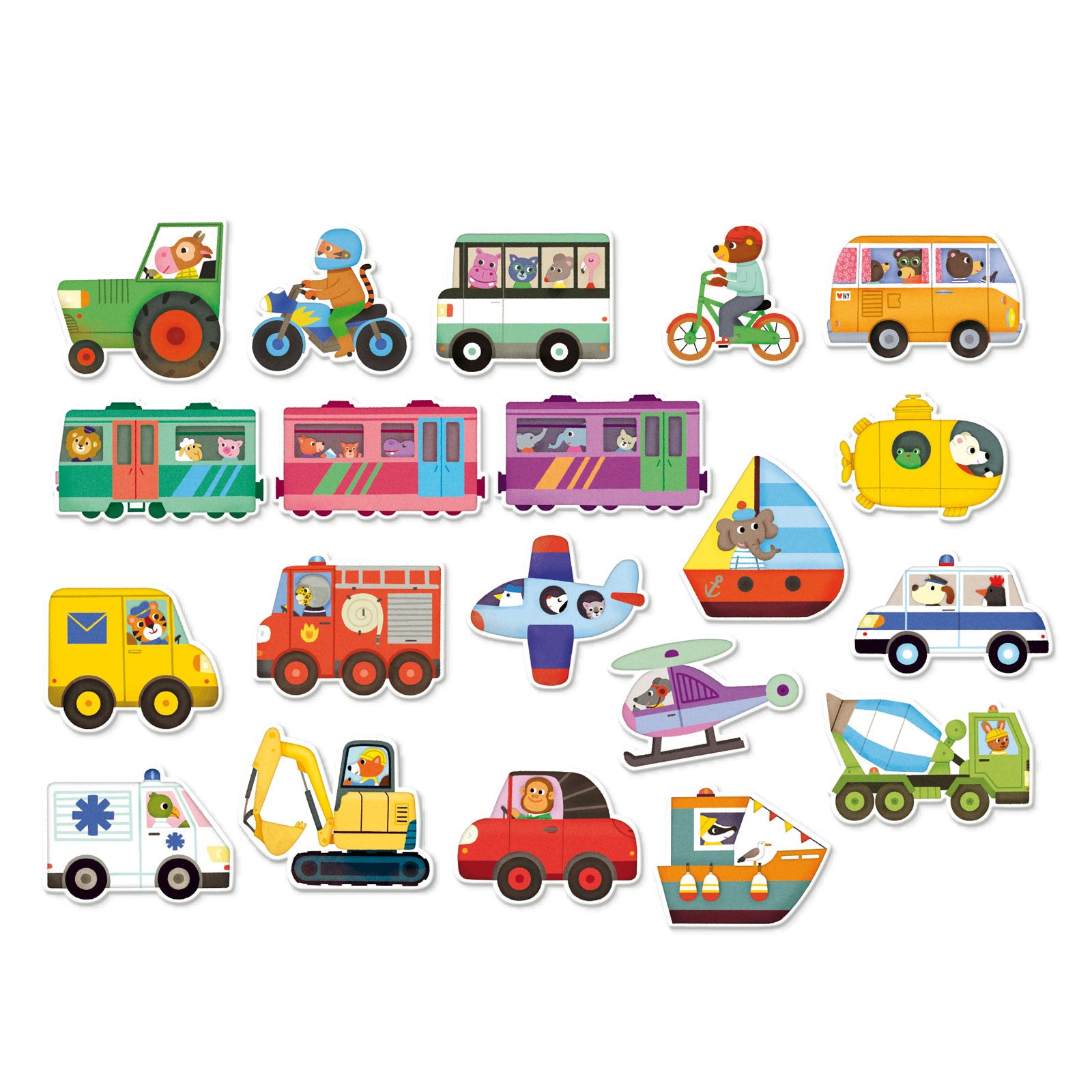 Fin æske fra Vilac med træmagneter af køretøjer, skibe og fly. Magneterne er med de sødeste motiver i fine farver og er perfekt til underholdning foran køleskabet eller magnettavlen. Indeholder 20 stk. Leveres i trææske med skydelåg. Fra 2 år.