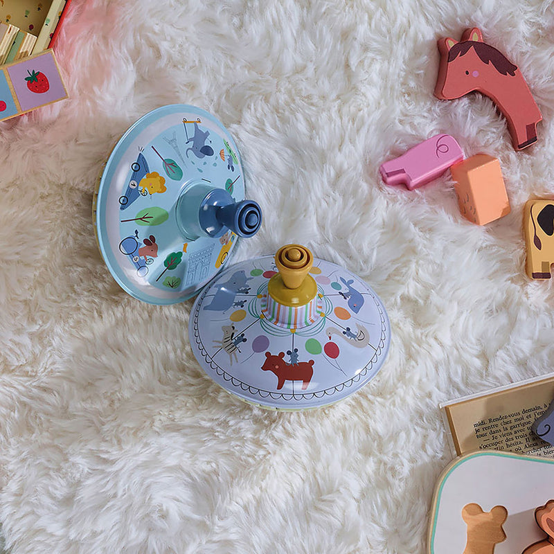 Klassisk snurretop fra Vilac, udført i metal og med de fineste. Tryk på håndtaget og se dyrene i snurre omkring. Fås i 3 farver. Prisen er for 1 stk. Vælg farver. Fra 3 år.