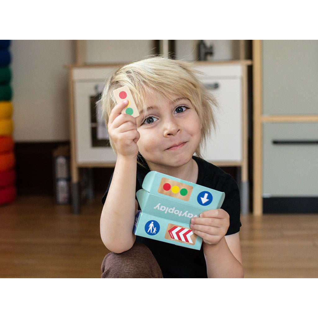 Gør legen sjovere med Waytoplays trafikskilte. Pakken indeholder en god blanding af forskellige vejskilte og trafiklys. Alle dele passer sammen med de resterende produkter fra Waytoplay og kan være med til at løfte trafiklegen til et nyt niveau. Alle klodserne bliver produceret i Holland og er lavet i solidt træ, så de går ikke i stykker så let - heller ikke hvis der sker en "ulykke" på en af vejbanerne. Fra 3 år.
