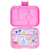 Flot madkasse fra Yumbox inddelt i flere rum og med bakke med søde motiver. I denne madkasse, kan du lave en sund og nærende madpakke, som er overskuelig og indbydende, hvad enten det gælder til skole, sport, udflugter eller andet. En virkelig smart og praktisk madkasse inddelt i 5 lidt større rum, samt 1 lille rum til snack eller dip. Kan både indeholde håndmadder, frugt og grønt, samt eftermiddagssnack, eller dip og yoghurt.